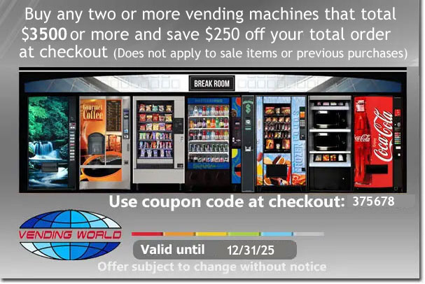 Vending World is a supplier of refurbished vending machines and vending machine parts. On the world wide web for 23 years from 1998 to 2021. We are the largest seller of refurbished vending machines in California. In total sales of used vending machines, refurbished vending machines and vending machine parts for the last ten years.